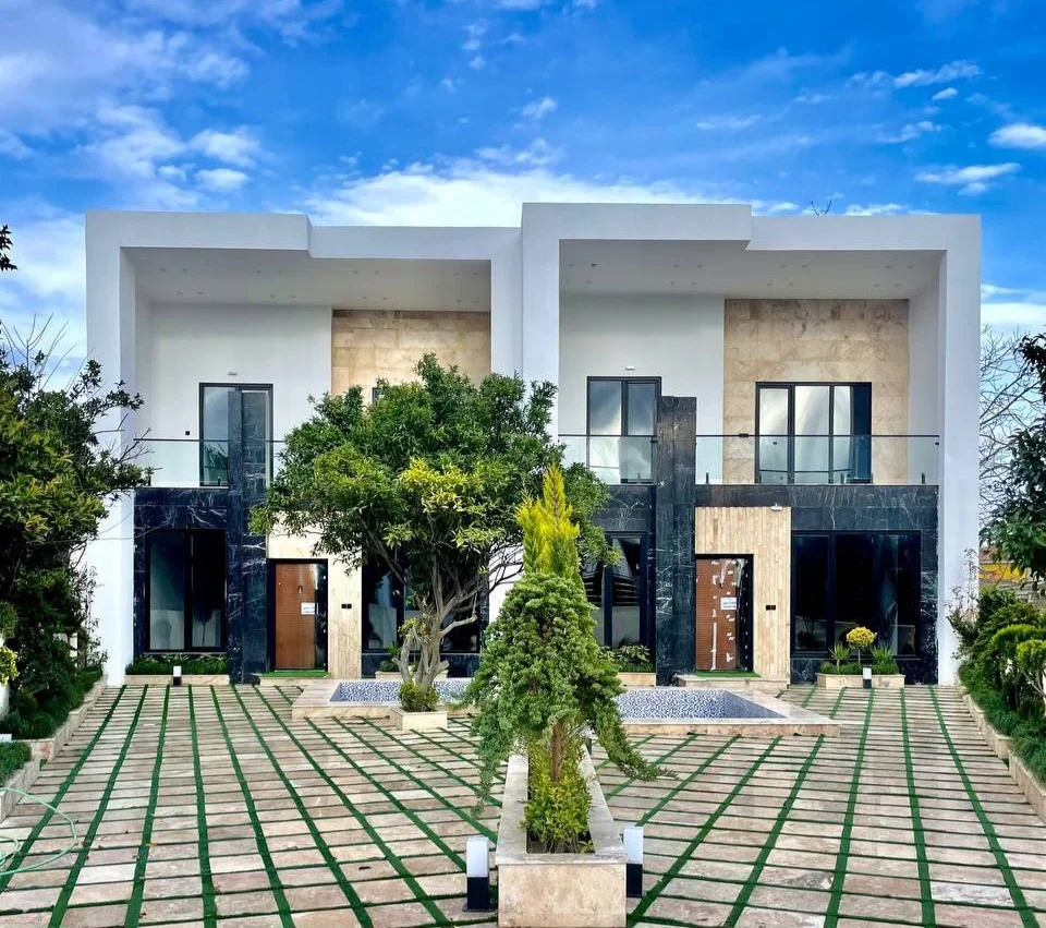 دو دستگاه ویلا دوبلکس نما مدرن 200 متر زمین، 170 متر بنا سه خواب مستر داخل بافت انشعابات نصب استخر داخل حیاط کابینت و کمد دیواری شوفاز کشی شده متریال و معماری مدرن و حرفهای داخل شهرک اختصاصی با نگهبان ویو ابدی کوه و جنگل دسترسی آسان به امکانات رفاهی