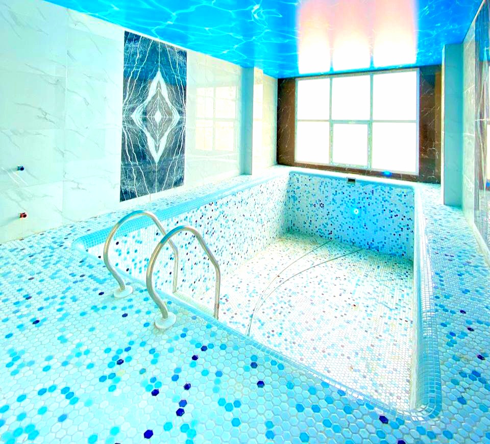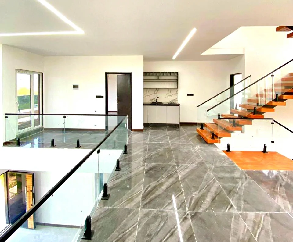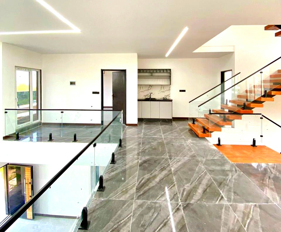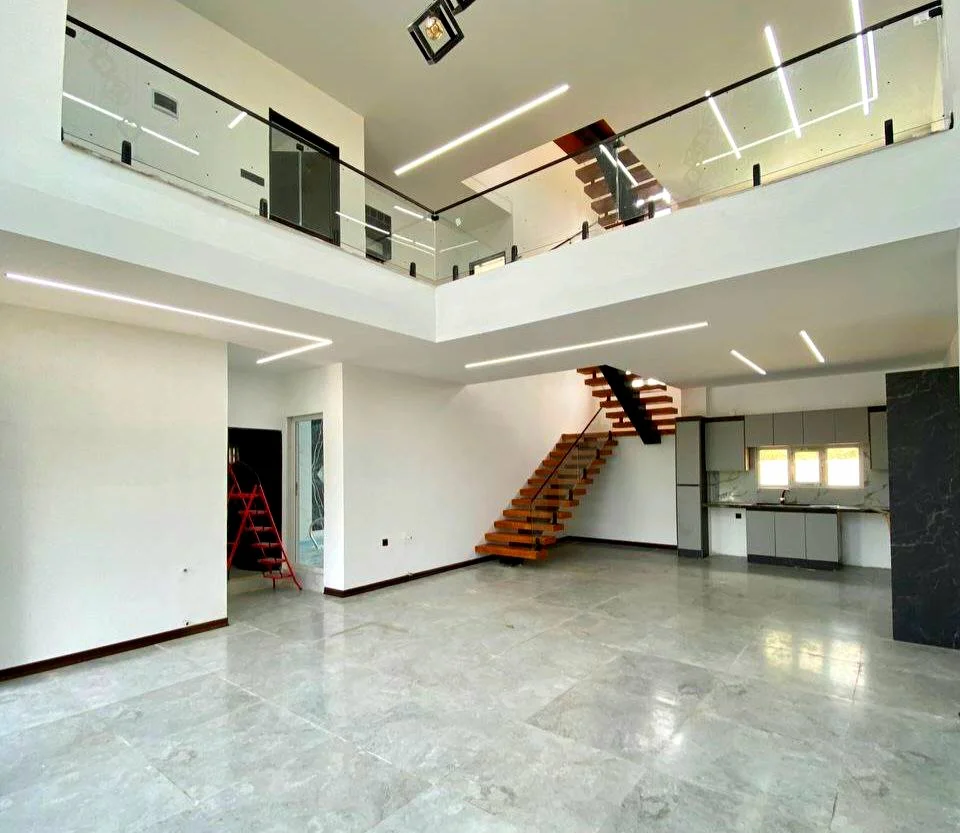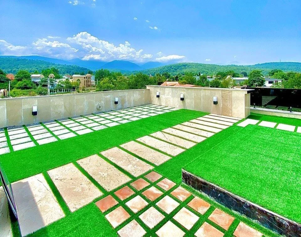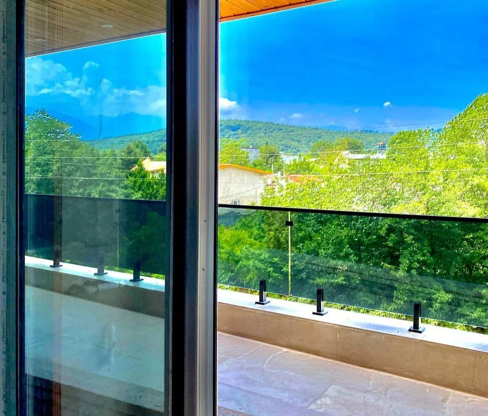 ویلا تریبلکس مدرن 255 متر زمین، 375 متر بنا با روف سه خواب، دو خواب مستر انشعابات شهرکی استخر چهارفصل داخلی میزبار و جکوزی روی روف باربیکیو پلاک اول رودخانه ویو عالی و ابدی از دوطرف به کوه و جنگل جانمایی نصب آلاچیق روی روف