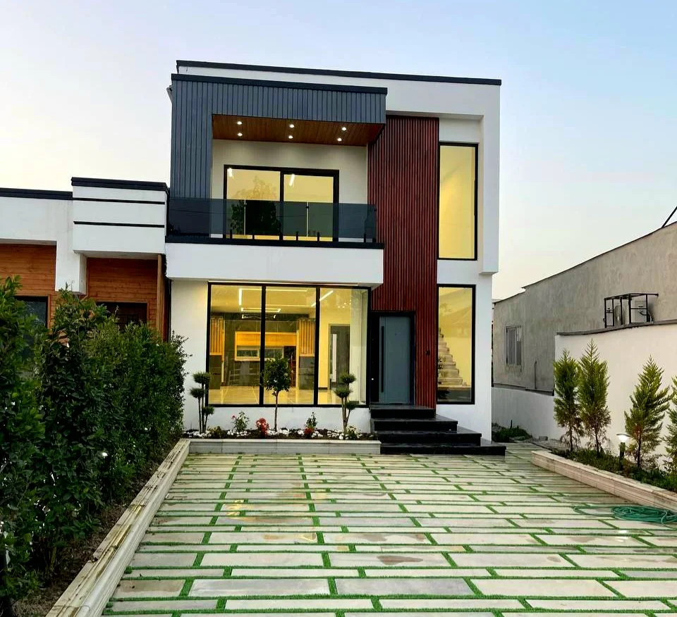 ویلا تریبلکس مدرن 230 متر زمين، 210 متر بنا با روف سه خواب، دو خواب مستر سه كنتور اختصاصي سند شش دانگ عرصه و اعيان کابینت و کمد دیواری نورپردازی عالی روف با چشم انداز ابدی حیاط سنگفرش و زیبا
