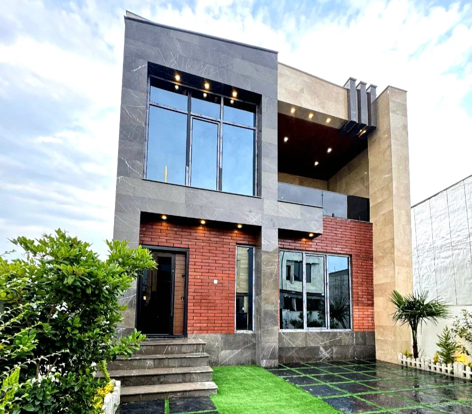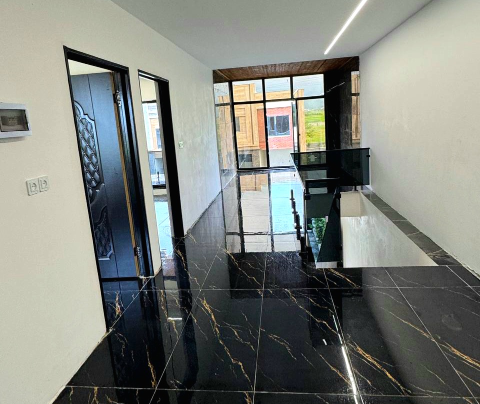 ویلا دوبلکس مدرن 170 متر زمین، 160 متر بنا سه خواب، دو خواب مستر انشعابات نصب سند تک برگ گاز صفحه ای و هود مخفی سقف سرویسها آسمان مجازی شهرک با گیت نگهبانی