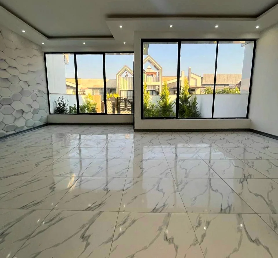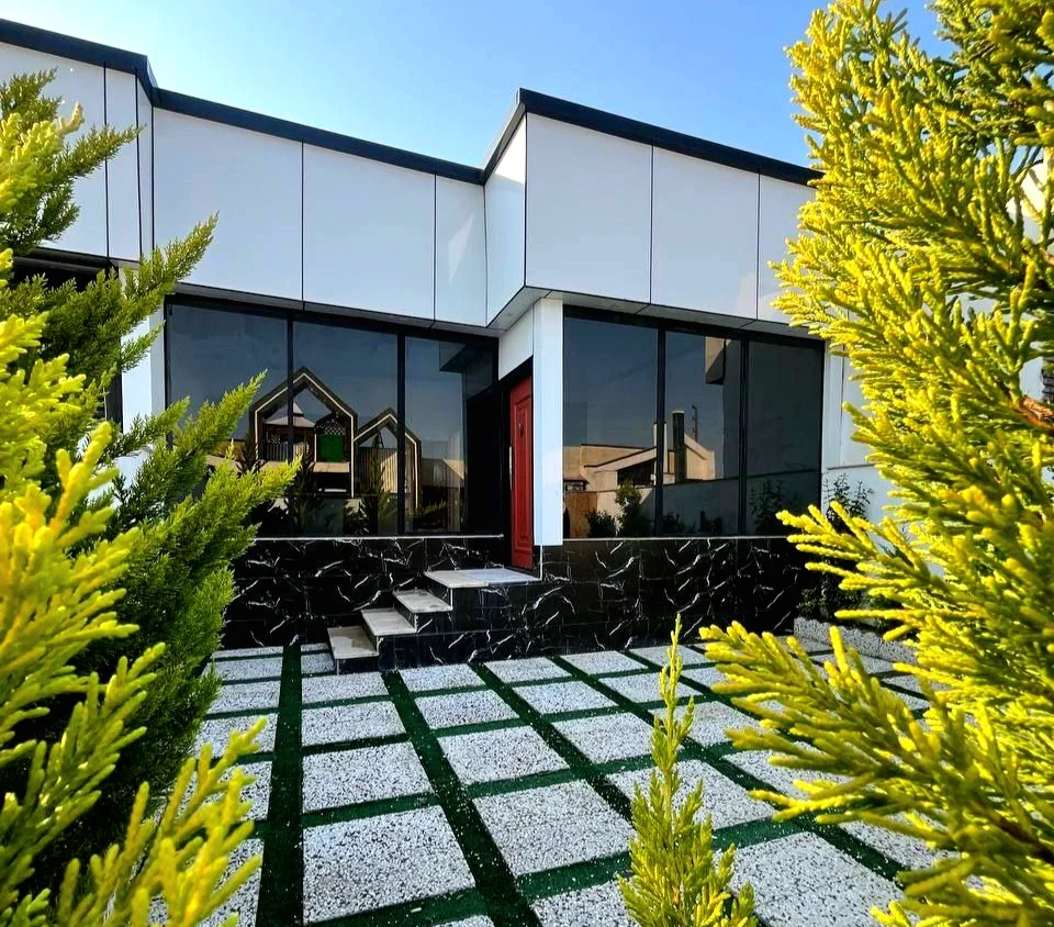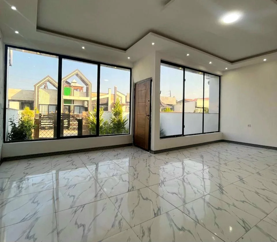 ویلا همکف مدرن 150 متر زمین، 85 متر بنا دو خواب + مستر انشعابات نصب نزدیک جنگل حیاط بزرگ نور گیر سالن عالی دیوار بلند مستقل